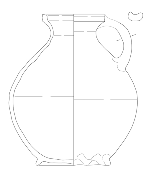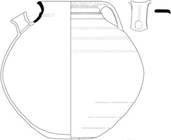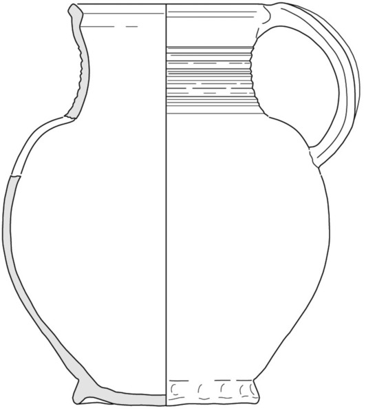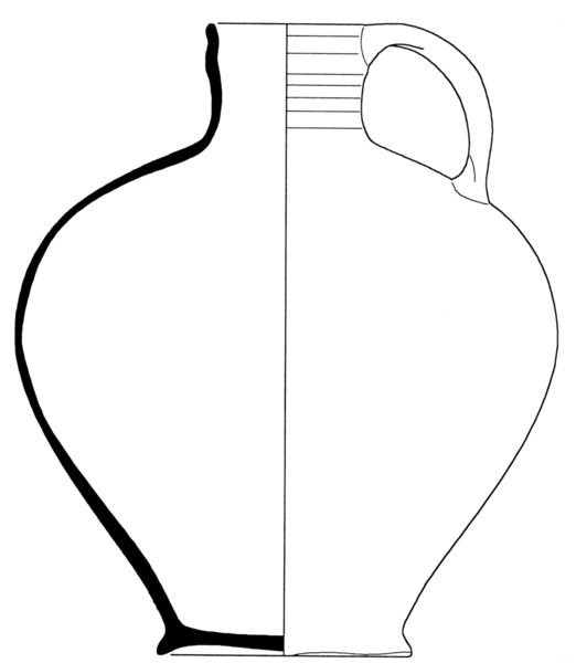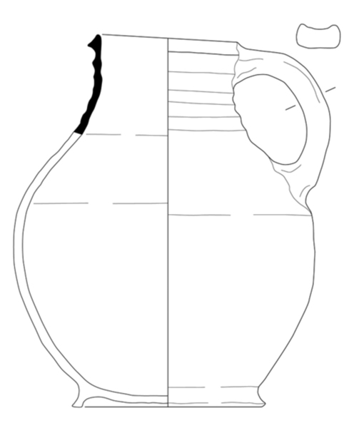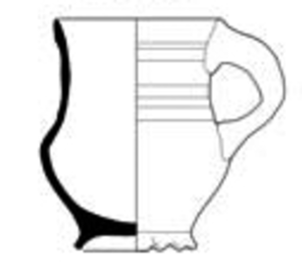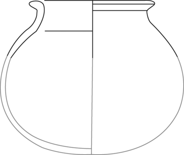 bolle handgevormde kan met cilindrische hals en naar binnen afgeschuinde of afgeplatte rand, standring