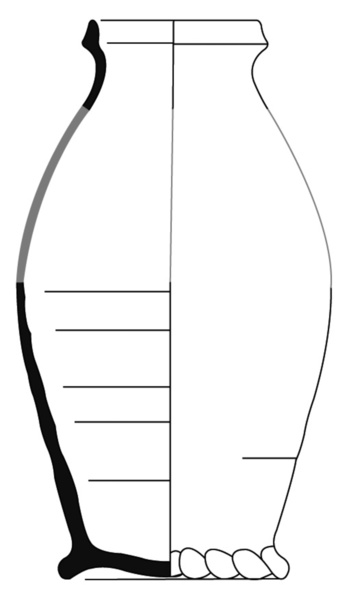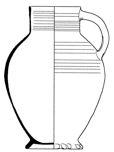 bolle, gedraaide pot met driehoekig verdikte rand, lensbodem