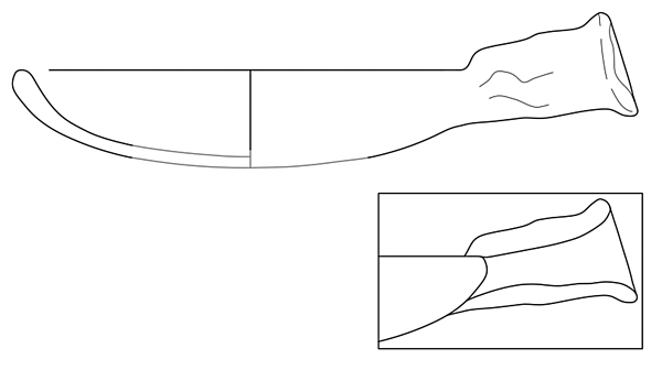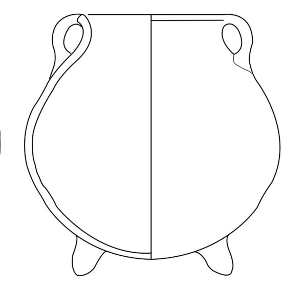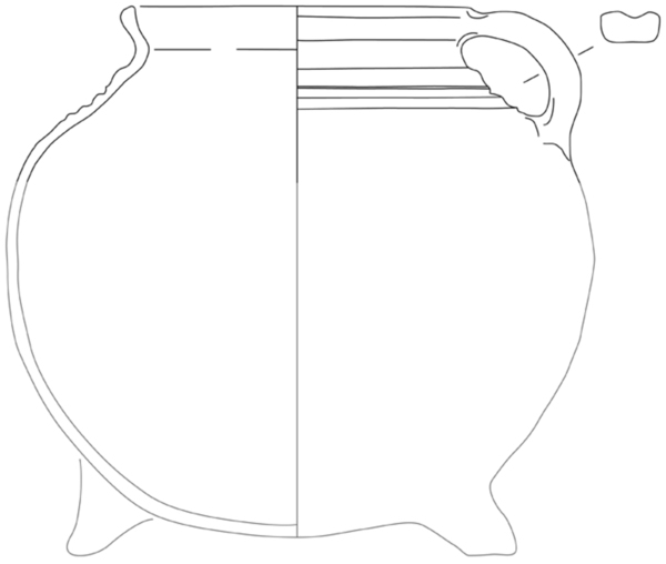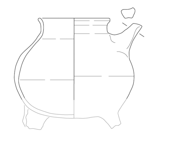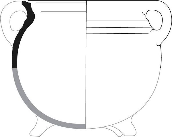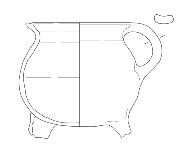 bolle handgevormde grape met gedraaide rand, driehoekige rand ('bg-kog-2 met poten en oren')