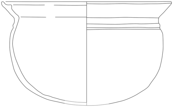 bolle grape met uitgebogen, verdikte en aan de bovenzijde afgeplatte rand (met groef)