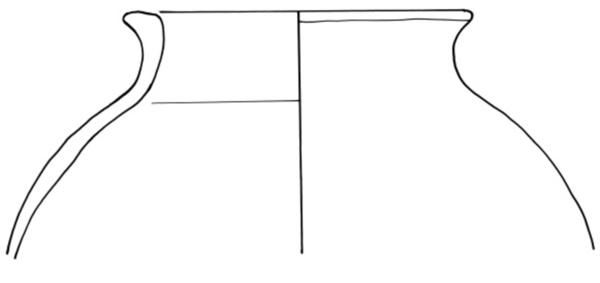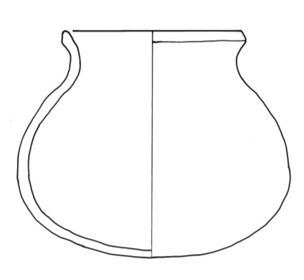 kogelpot met verdikte, aan de zijkant afgeplatte rand