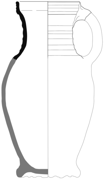 (lage) wijde peervormige kan met S-vormig profiel en rechte iets uitgebogen rand, standring