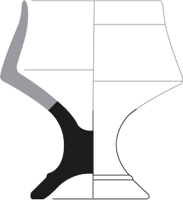 hoge beker met S-vormige overhangende kraagrand met groef aan binnenzijde, standring
