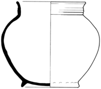 bolle pot met korte cilindrische hals en uitgebogen lip, standring