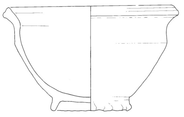 bolle handgevormde kan met cilindrische hals en naar binnen afgeschuinde of afgeplatte rand, standring