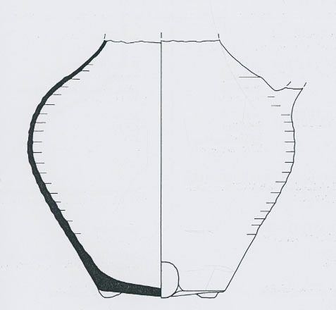 wijde grape met een afgeronde buikknik en een sterk geprofileerde uitstaande rand: verdikt afgerond en naar binnen afgeschuind (soms met lip) met daaronder een dekselgeul