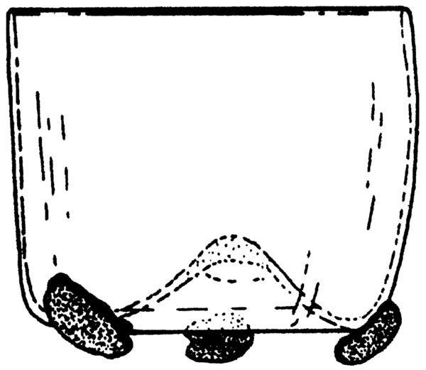 cilindrische (a), conische (b) of getailleerde (c) beker met gekruist ribbelpatroon, opgestoken bodem met pontilmerk