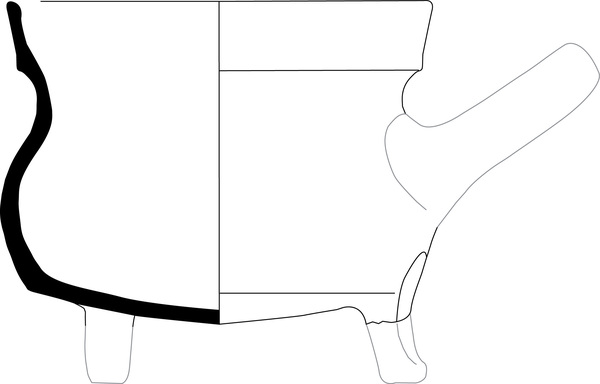 bolle grape met korte uitstaande afgeronde rand, bolle bodem met poten