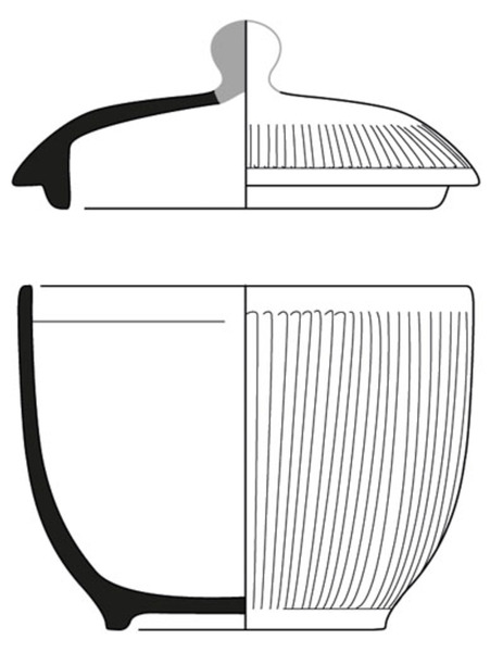 steilwandige suikerpot met rechte, aan binnenzijde afgeschuinde rand (voor deksel), standring