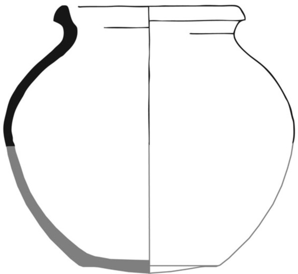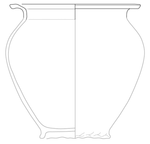 handgevormde bolle pot met driehoekig verdikte rand, standring