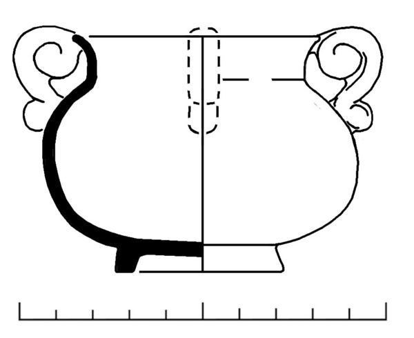 bolle pot met hoge schouder en verdikte afgeronde rand, lobvoeten