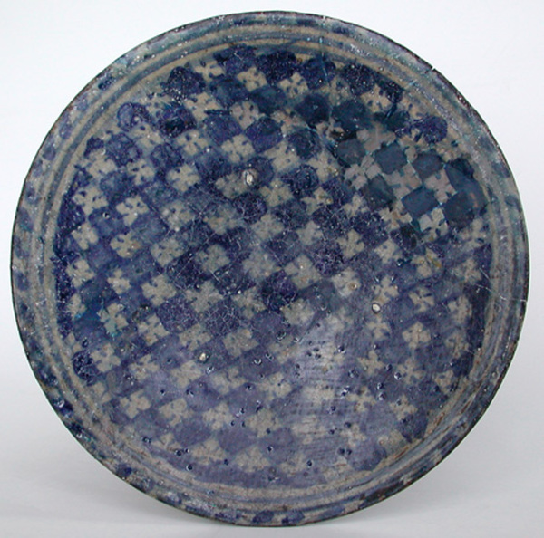 | 5c decoratie | schaakbordmotief in blauw, begrensd door dubbele cirkel en streeppatroon inwendig: blauw |