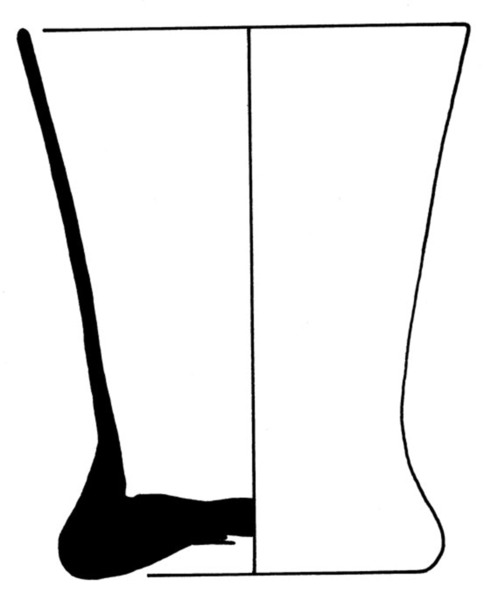 | 4b vorm | dikwandige getailleerde beker, verdikt standvlak met (eventueel weggeslepen) pontilmerk |