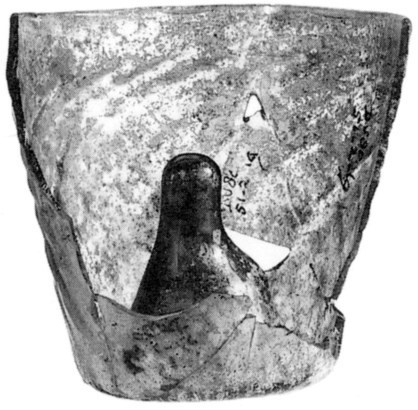 | 4b vorm | conische beker met gekruist ribbelpatroon, opgestoken bodem met pontilmerk |