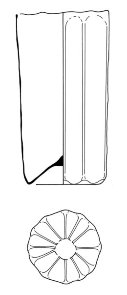 | 4b | cilindrische beker met verticale ribben, zonder of met noppootjes, opgestoken bodem met pontilmerk |