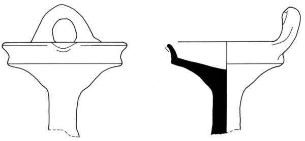 | 4b | olielamp met twee schalen en stam, een worstoor, lekschaal afgeplat, geknikte rand |