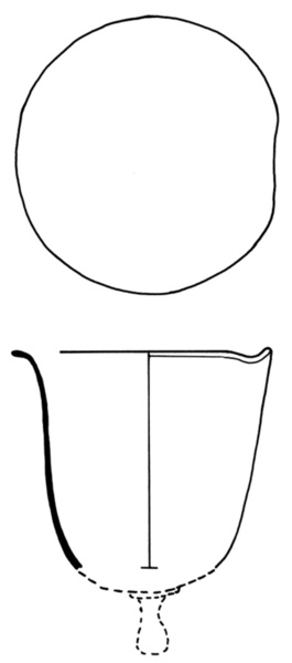 | 4b vorm | klokvormige vogelkooizaad- of drinkbak met platte achterzijde en onderaan eindigend in een knop |