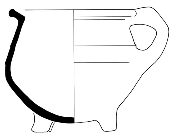 | 4b | grape met bolle buik of afgeronde buikknik met ribbels en naar buiten geknikte rand met dekselgeul |