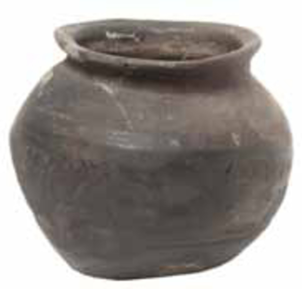 | 4b vorm | bolle pot met hoge, aan de bovenzijde afgevlakte rand, lensbodem |