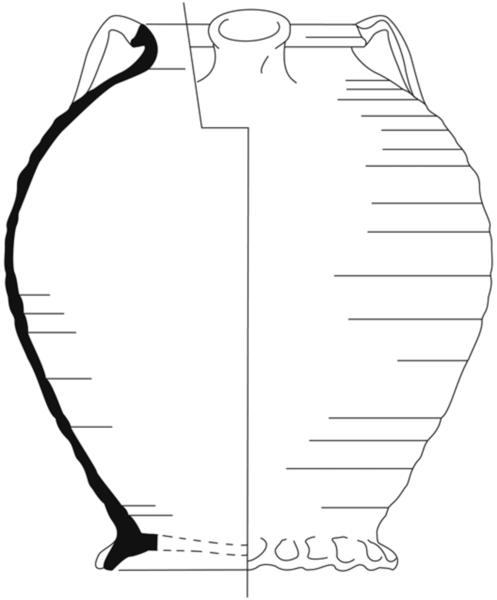 | 4b vorm | bolle pot met driehoekige rand, standring (Sanke randtype 2.16-2.19) |