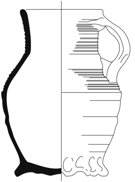 | 4b vorm | bolle kan met rechte rand en ribbel op buikknik, standring |