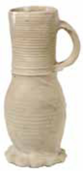 | 4b | lage slanke bekervormige kan met kraag op halsaanzet en rechte rand, op standring |