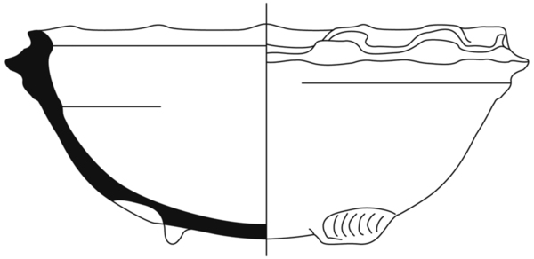 | 4b | bolle kom met verdikte (omgeslagen) gegolfde rand, lobvoeten |
