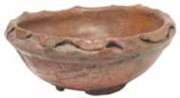 | 4b vorm | bolle kom met verdikte (omgeslagen) gegolfde rand, lobvoeten |
