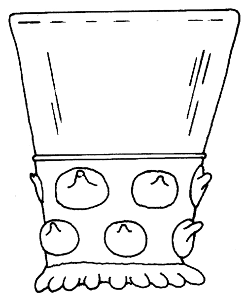 | 4b | berkemeier met conische cuppa die op de overgang naar de conische of cilindrische schacht met draad is afgezet, met twee of meer verspringende horizontale rijen van opgerichte puntnoppen, ook patroonvorm, opgestoken bodem met pontilmerk, geknepen voetring |