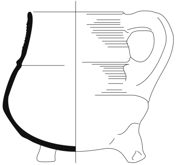 | 4b | hoge grape met afgeronde buik en één of meerdere ribbels op wand, licht uitgebogen rechte rand |