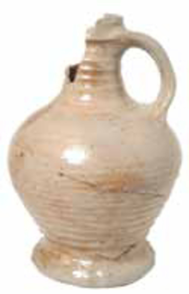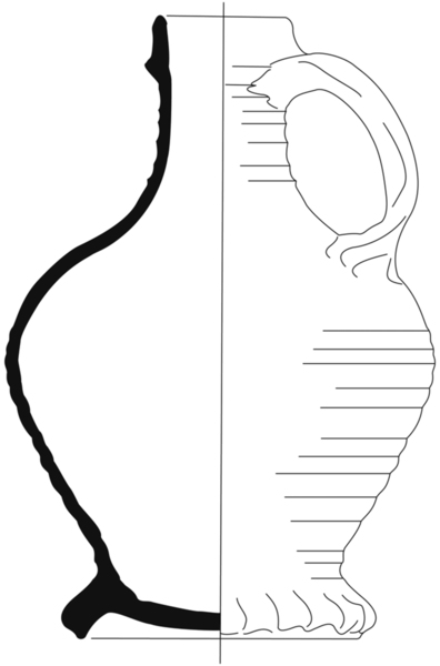 | 4b | bolle kan met afgeronde buikknik, schouder overgaand in hals, ribbels op schouder en hals, kraagrand, standring |