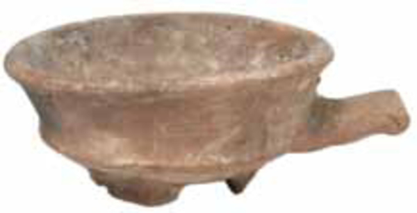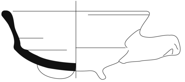 | 4b | ondiepe ronde vuurtest met scherpe knik bodem-wand en naar buiten geknikte lip, lobvoeten |