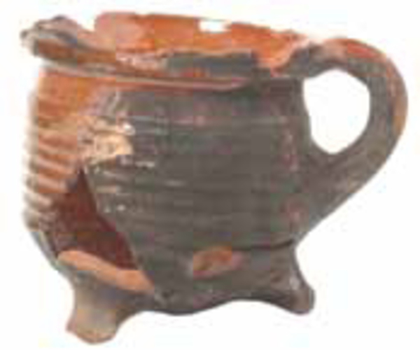 | 5a baksel | roodbakkend aardewerk , met slibversiering |