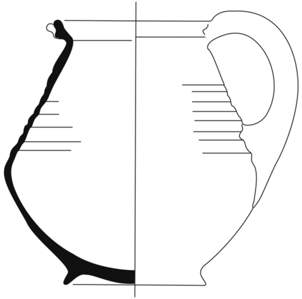 | 4b | hoge peervormige kan met afgeronde buikknik en naar buiten gebogen kraagrand, standring |