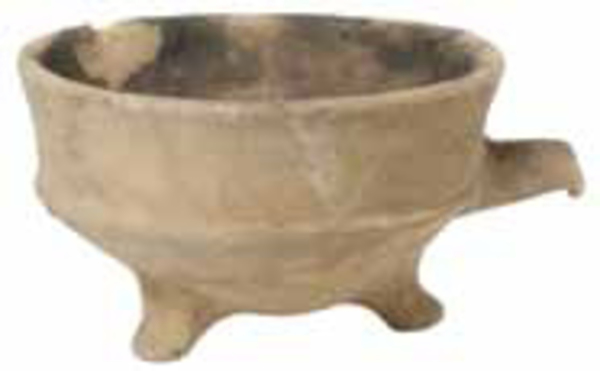 | 4b | diepe ronde vuurtest met scherpe knik bodem-wand en rechte rand, poten |