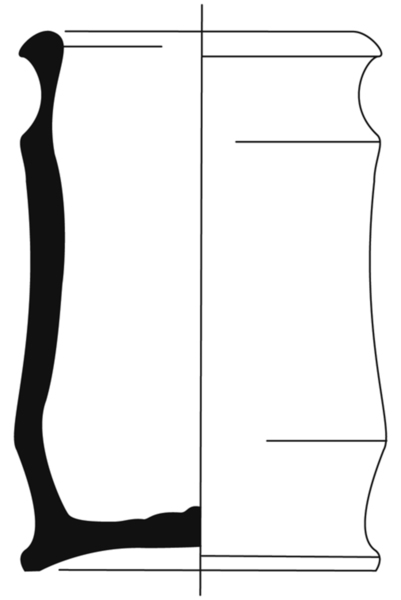 | 4b vorm | hoge, smalle zalfpot met ingesnoerde bodem en hals met uitgebogen rand, standvlak |
