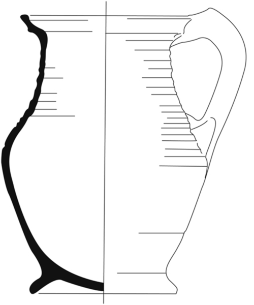 | 4b | peervormige kan met kraagrand met dekselgeul, standring |