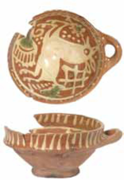 | 5a baksel | roodbakkend aardewerk , met slibversiering |