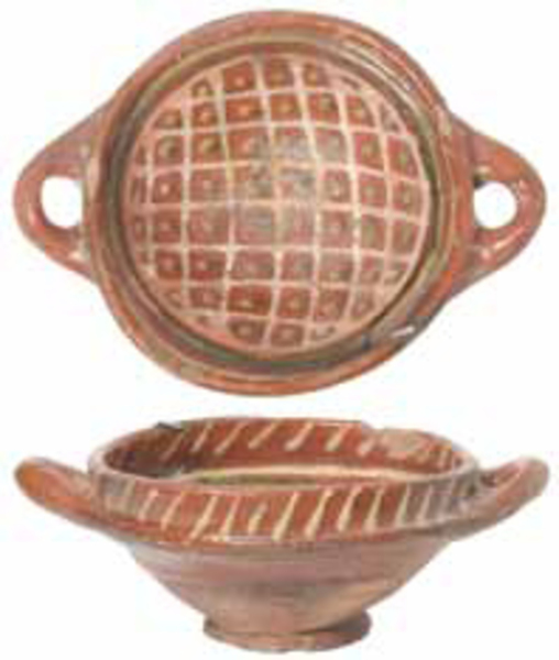 | 5a baksel | roodbakkend aardewerk , met slibversiering |