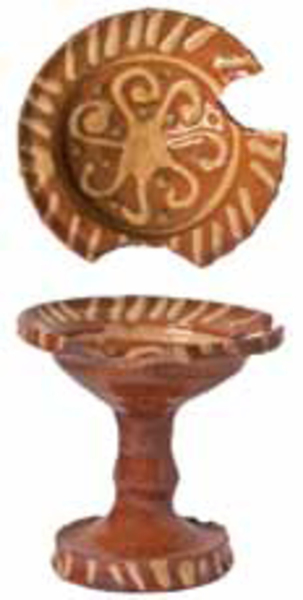 | 5a baksel | roodbakkend aardewerk , met slibversiering |