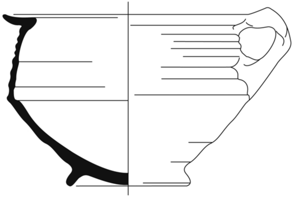 | 4b | pispot met buikknik met ribbel, scherp geknikte rand met platte bovenzijde, standring |