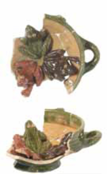 | 5c | uitw: groen; inw: witte sliblaag en in reliëf 3 bloembladern polychroom |