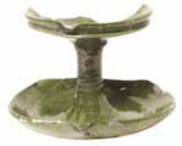 | 4b | olielamp met twee schalen en stam, 1 worstoor, lekschaal afgeplat, geknikte rand |