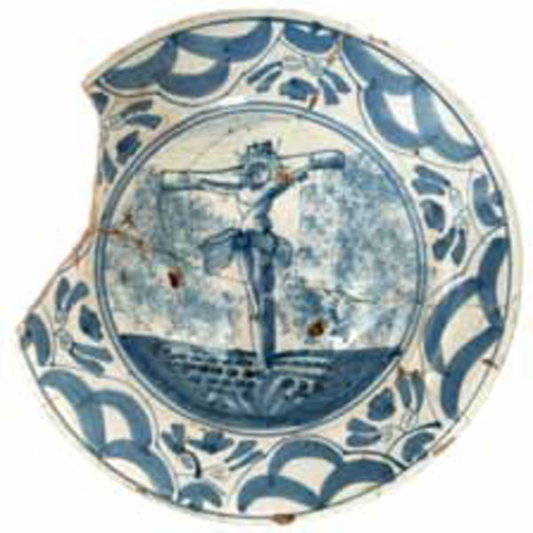 | 5c decoratie | blauwe beschildering, gekruisigde Jezus inwendig: blauw |