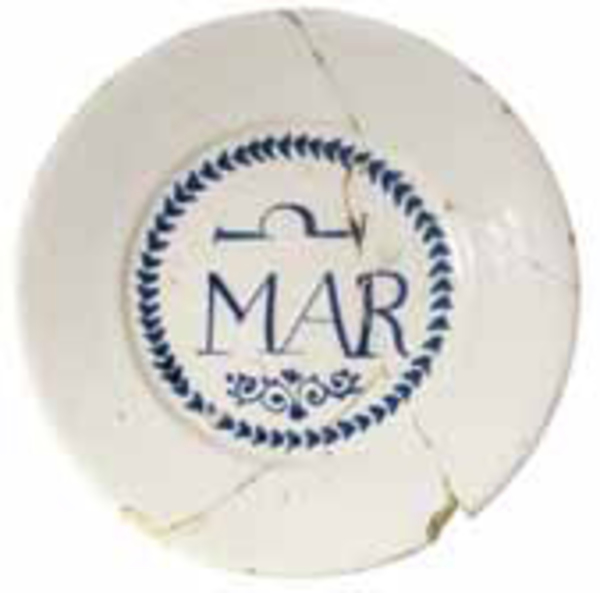 | 5c decoratie | blauwe beschildering: tekst MAR blauw |