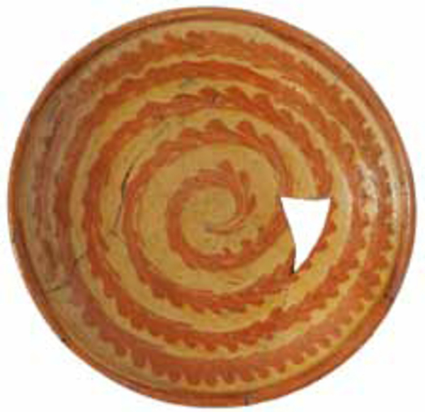 | 5a baksel | roodbakkend aardewerk , met slibversiering |