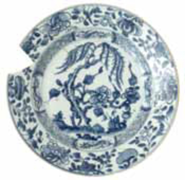 | 5c decoratie | blauwe beschildering onderglazuur blauw |