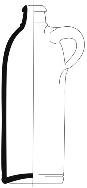 | 4b | cilindrische fles met afgeronde schouder, korte cilindrische nek met verdikte lip, platte/holle bodem |