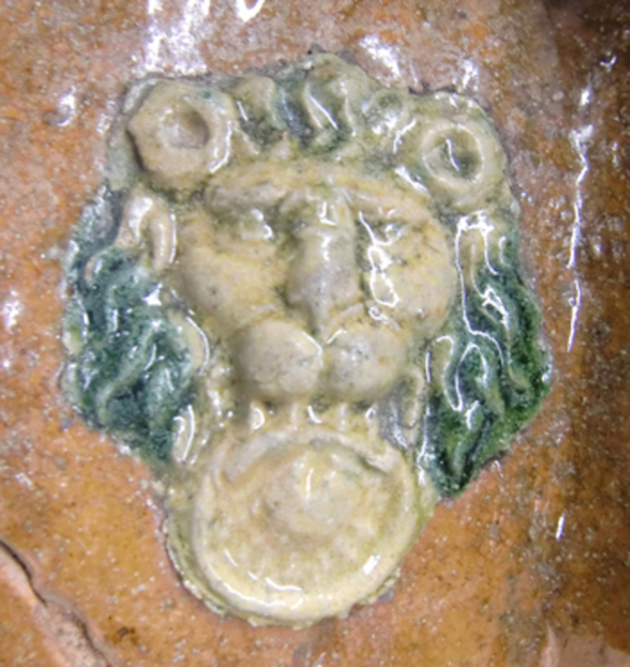 | 5c | appliques witbakkende klei, roos en leeuwenmasker, groene accenten |