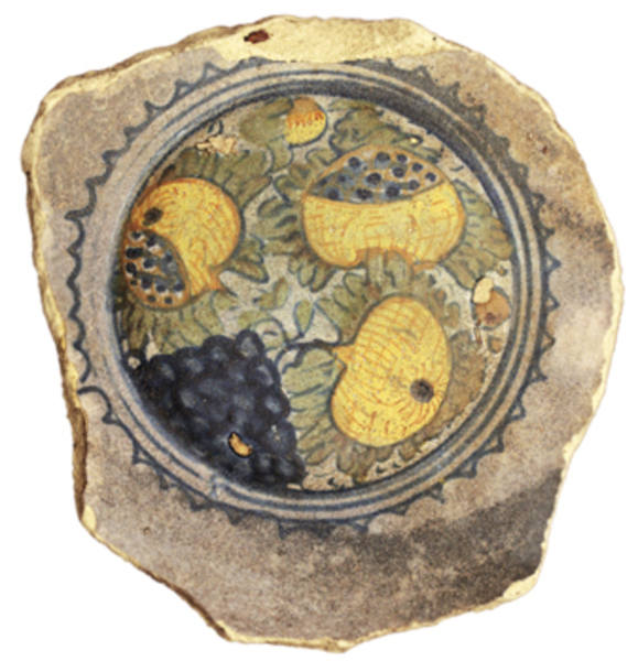| 5c decoratie | polychroom, granaatappels en druiven inwendig: polychroom |